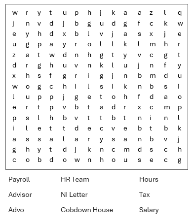 Now please feel free to have a go at our payroll themed wordsearch below: